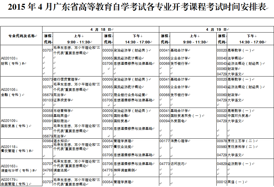 2015年4月廣東自考時(shí)間及科目安排.docx