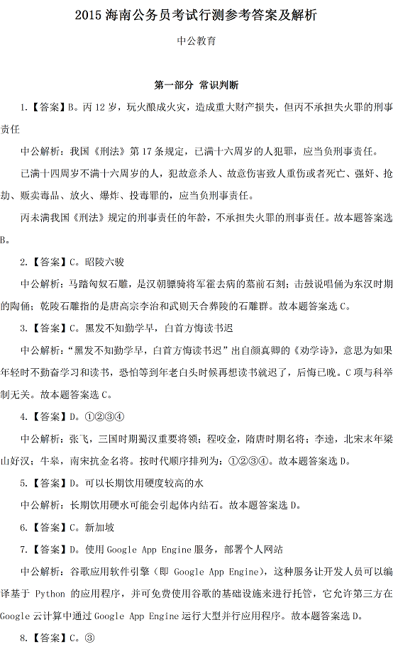 點擊查看>>2015年425公務(wù)員聯(lián)考真題及答案解析