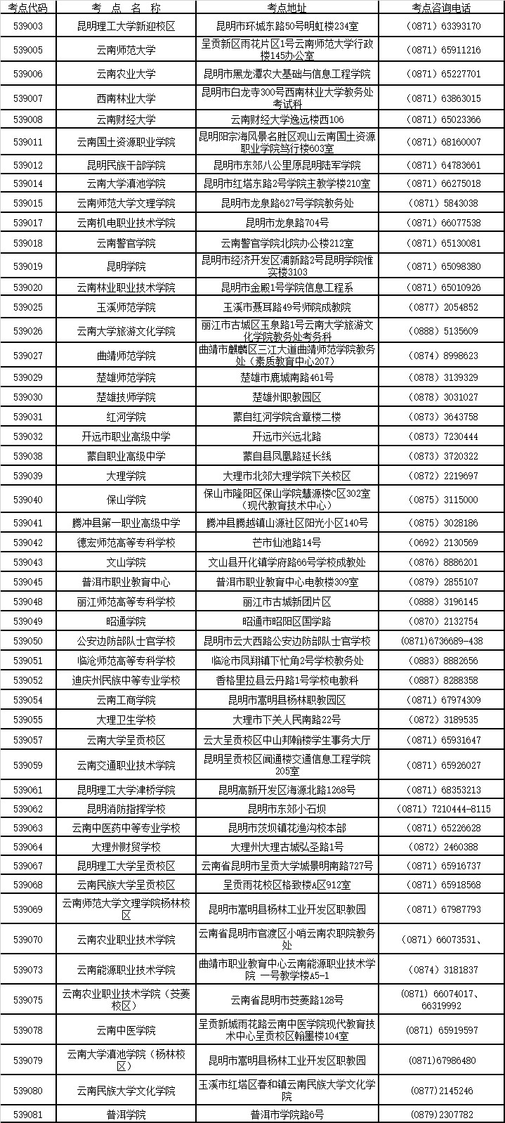 根據云南教育考試院發(fā)布的《云南省2015下半年第43次全國計算機等級考試報考簡章》得知,2015年云南計算機等級考試報名地點如圖所示: