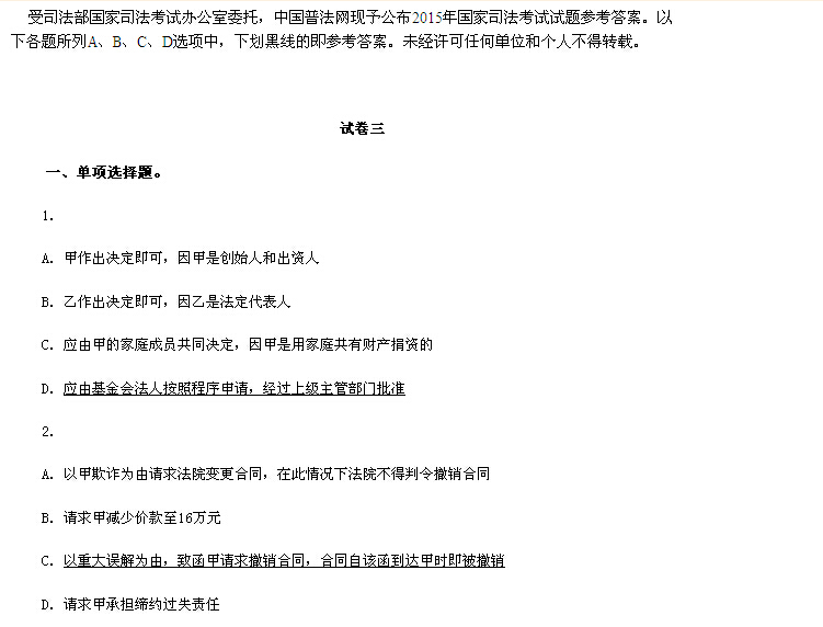 點(diǎn)擊查看:2015年國家司法考試真題答案專題