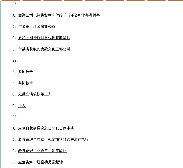 - 查看國家司法考試全部文檔 >>