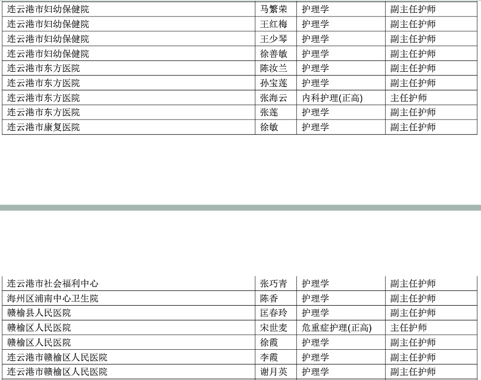 2015年江蘇省衛(wèi)生高級專業(yè)技術(shù)資格評審?fù)ㄟ^人員公示名單(護(hù)理)