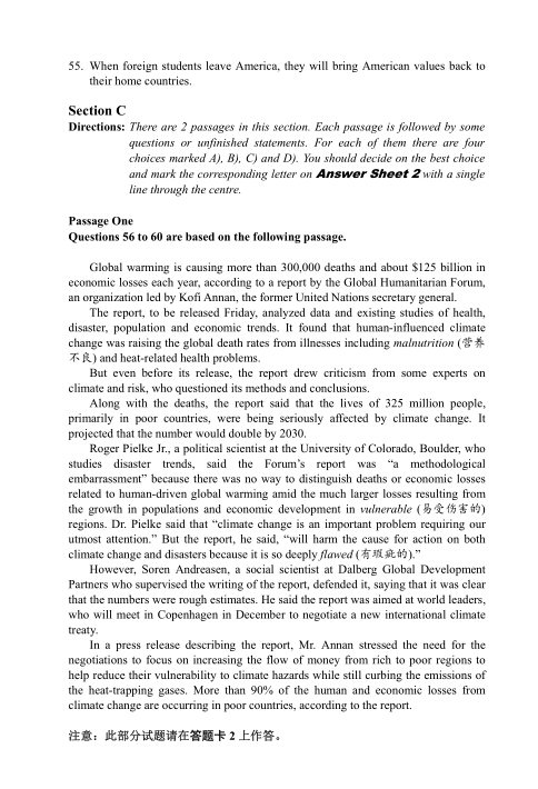 2016年大學(xué)英語四級考試樣題