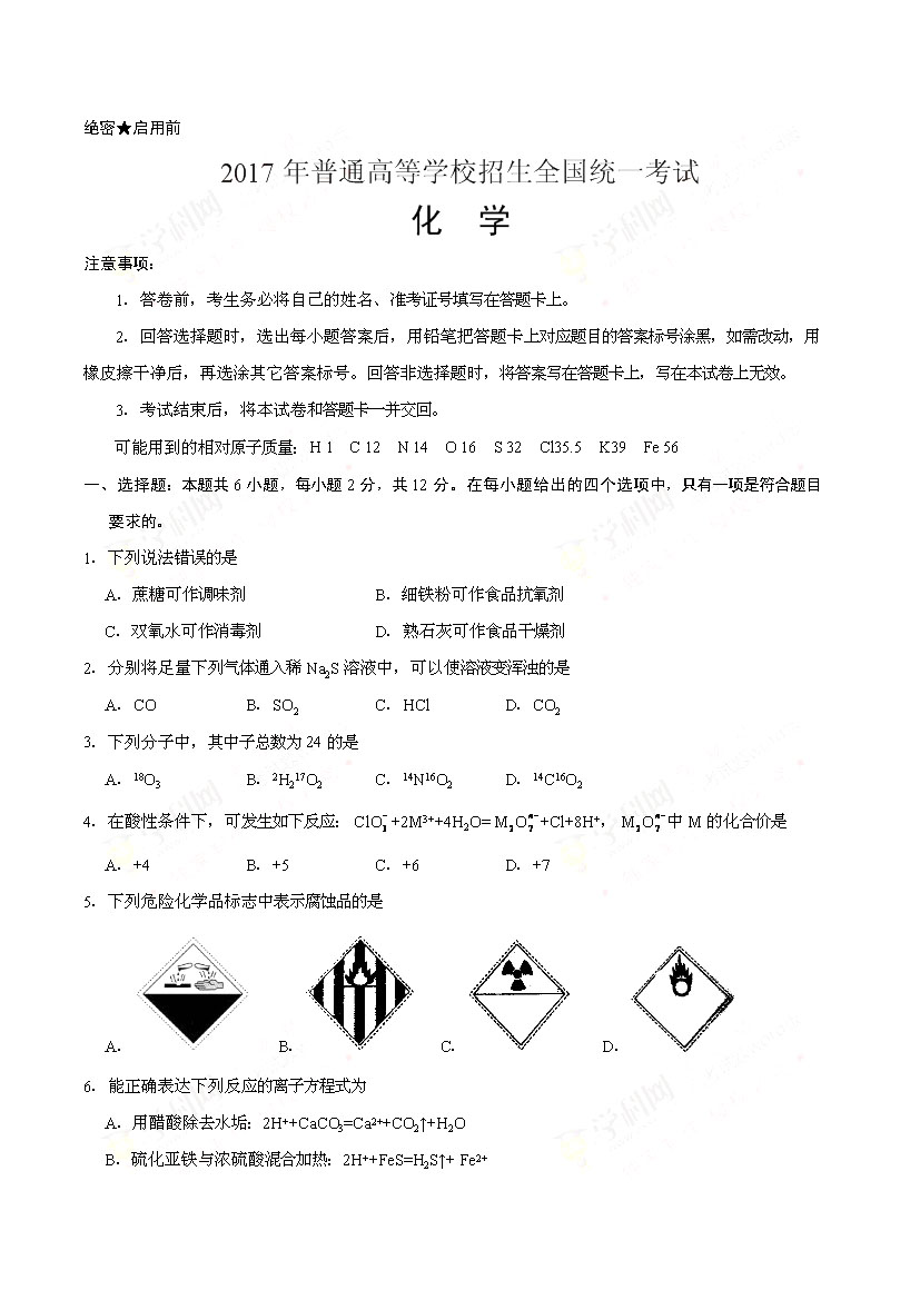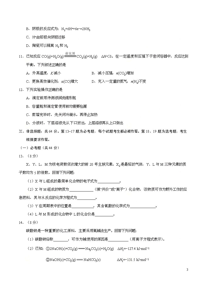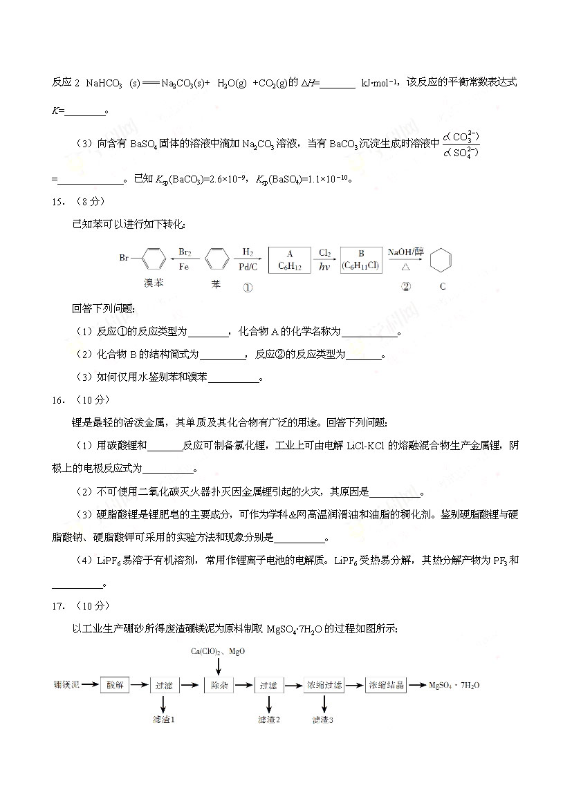 2017海南高考化學(xué)真題(已公布)
