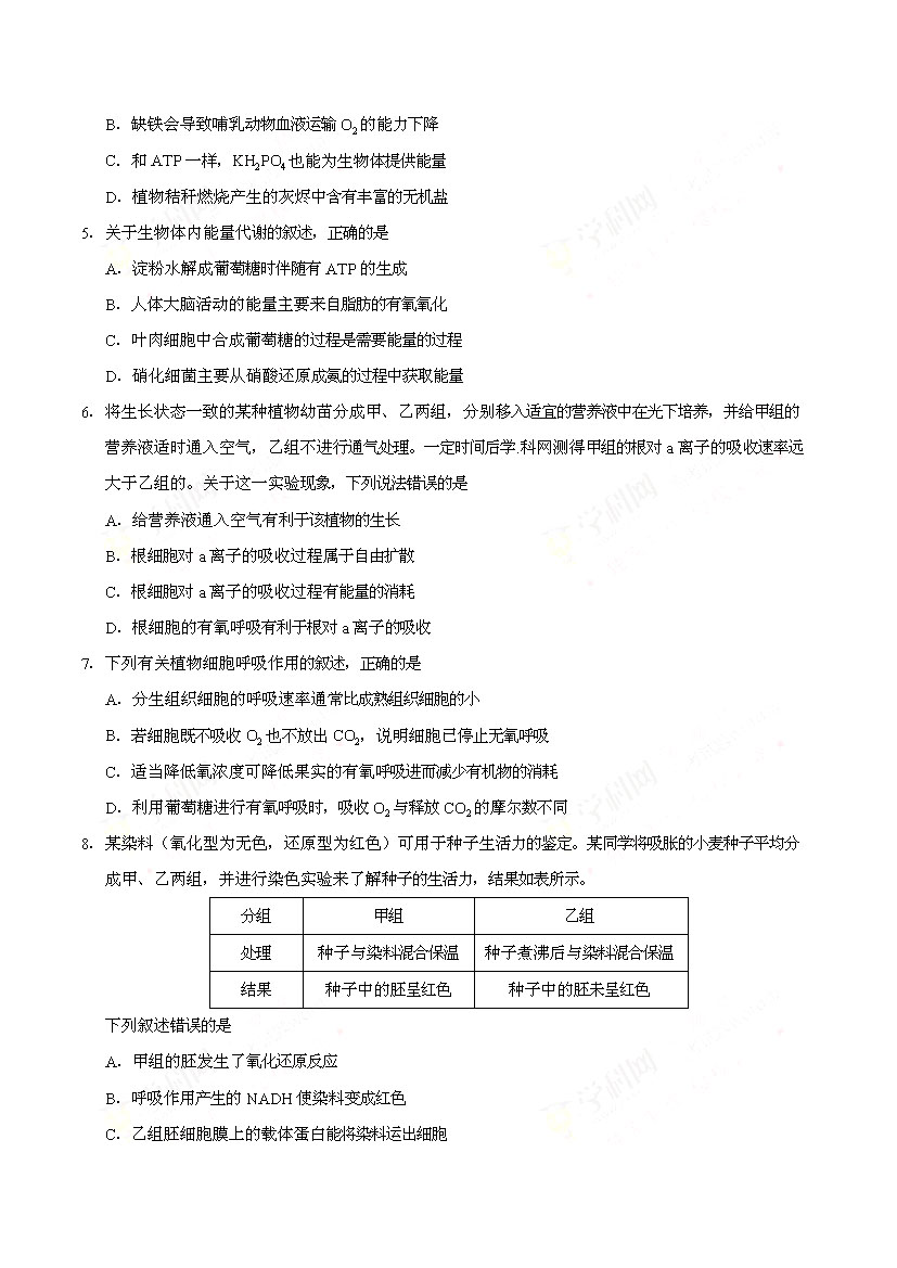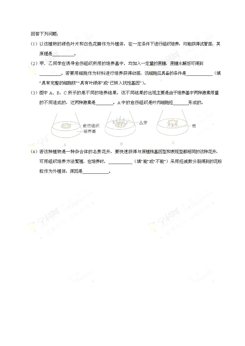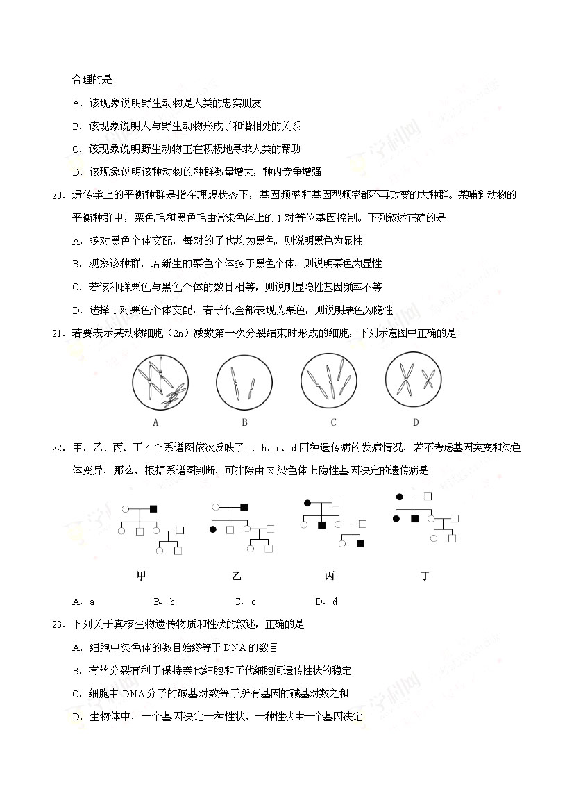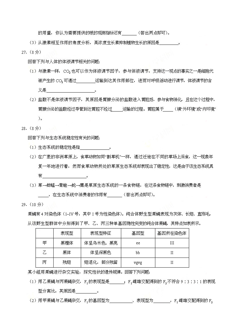 2017海南高考生物試卷(已公布)